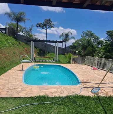 1°Platô- área livre a ser construída,entrada para carro e porteira principal com poste padrão,caixa d'água 2° platô: churrasqueira,forno e fogão a lenha,piscina ,deck,salão com mesa e cadeiras,ar condicionado,tv todo envidraçado,banheiro,quarto com ar condicionado, sistema de energia solar. 3° Platô - Mini fazenda, árvores frutíferas,viveiros de pássaros ,coelhos ,baias de criadouros de aves,lago,canil,casa de ferramentas com banheiro ,e sistema de esgoto de acordo com a legislação,poço artesiano