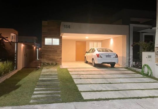 Casa em condomínio com 3 dormitório, todos com banheiro, 2 andares, com piscina, churrasqueira, 4 vagas na garagem e muito espaçosa.
